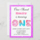Sweet Candy Pink Purple Glitter First Birthday One Invitation