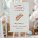 Planning a Little Cannoli Baby Shower? This adorable Italian themed baby shower welcome sign poster features watercolor cannoli pastries and a sweet bakery aesthetic in pink colors. Perfect for a Sweet Little Cannoli Is on the Way celebration.