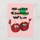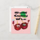 Two smiling cherries on stems, one holding a glass, and caption Sweet Chery Wine on aprons, t-shirts, key chains, buttons and more fun cherry wine gifts.