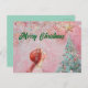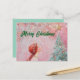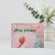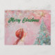 A Christmas postcard when you're on the go and want to send a holiday greeting. The front illustration shows a Christmas tree and young woman with red hair. The front text says: Merry Christmas. The back text says: And a Happy New Year.