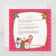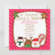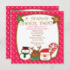 Cookies anyone? Nothing says the holidays more than a good old fashioned cookie exchange! Invite your family and friends over for some baked goods with this adorable cookie swap invitation. It's set on a red with white polka dot background. There's a brown border with two star cookies on the top corners. Along the bottom are more colourful cookies: a candy cane cookie, snowman, reindeer, and santa face. Use the back of this cute invitation to explain how a cookie swap works. Check out the many other designs we have.