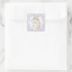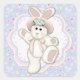 Sweet Country bunny features a cute white toy rabbit with profusion of scattered flowers and pink butterflies on pastel blue background for baby and toddlers. Matching invitations, stickers and more available in my store.