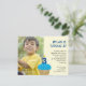 A chocolate cupcake with blue icing topped off with a flower and a numeral "3" candle is the main focus of this cute birthday invitation. Add your child's photo to the left and any extra information on the reverse. Available in alternate colours and ages with matching products.