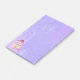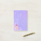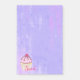 Large sized sticky notes with an illustration of a delicious looking cupcake. Pink frosting and chocolate drizzles. A yellow cupcake holder and a raspberry on top. Yummy! The background is a purple abstract texture with little hearts peppered throughout.