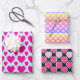Customisable lovely wrapping paper sheets for Valentine's Day with three different patterns of hand drawn pink hearts.
