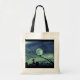 sillouette art of a lone bird sittin on a leafless branch with the sweet moon above it, and quirky gravestones in the cemetery.