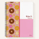 A seamless doughnut pattern notebook with five different kinds of doughnuts. Includes personalized name and year text.