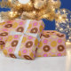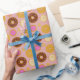 A seamless doughnut pattern wrapping paper with five different kinds of doughnuts.