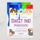 Sweet doughnuts, rainbow colours, sweet first birt invitation