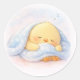 Adorable sleepy baby chick Alma resting under a soft cosy blanket.