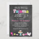 Our original, best-selling, Sweet Dreams Pajama Party Chalkboard style birthday party invitation is the perfect invite for any pajama theme party, slumber party or sleepover. Our design features a chalkboard background, a mix of fun pattern letters such as polka dots, stripes and chevron, bunny slippers, a stack of cookies, hot chocolate, sweets, nail polish, make up and more!