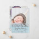 Thoroughly modern and simply elegant, this design is a perfect way to introduce your sweet little man. Features lovely cursive typography and two large photos of your baby boy - one on the front and one on the back. The front also holds baby's birth information, and on the back a special text area to be personalised with parents and family info.