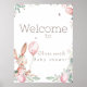 Feathering sweet floral pink watercolour and adorable bunny with balloon