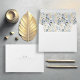 This elegant wedding suite features delicate floral and foliage designs in a dusty blue and gold colour scheme for a cohesive and stunning wedding theme. The matching envelope shown here showcases a sweet floral pattern interior and a template to add your initials and return address easily using the provided template. Search ID1045 to see other products in this wedding design set.