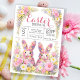 Ideal for family and friends brunches, lunches, egg hunts, school events, or springtime celebrations, this design sets a sweet and festive tone from the moment guests receive it. The delicate floral details paired with the cute bunny illustration make it both elegant and playful—perfect for bringing friends and loved ones together for a joyful Easter celebration.