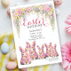 Ideal for family lunches, egg hunts, school events, or springtime celebrations, this design sets a sweet and festive tone from the moment guests receive it. The delicate floral details paired with the cute bunny illustration make it both elegant and playful—perfect for bringing friends and loved ones together for a joyful Easter celebration.