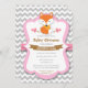Invite your loved ones to a sweet baby shower honouring a mother-to-be with this adorable fox invitation. Features grey chevron background and a happy orange fox.