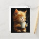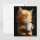 Sweet Ginger Kitten With a Coffee Postcard
