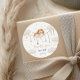 Add a sprinkle of pure enchantment to your baby shower favours with our adorable thank you stickers! Featuring a tiny, snoozing lion cub dreaming on a soft, fluffy cloud, surrounded by delicate golden stars, this design is pure bliss. We imagined this scene on a quiet, starry night, where even the fiercest of creatures finds peaceful slumber. It's the sweetest way to say "thank you" to your guests and leave them with a warm, fuzzy feeling!