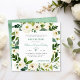 Affordable custom printed baby Baptism invitations personalised with your event details. This pretty botanical design features a watercolor frame of green leaves and ivory roses. Use the design tools to customise the text, edit the fonts and colours or add your own photos to create a one of a kind rustic floral Holy Baptism or Christening invitation.