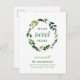 Affordable custom printed moving announcement postcards personalised with your family's new address and contact info. This pretty botanical design features a watercolor wreath of greenery and leaves surrounding Home Sweet Home quote. Use the design tools to customise the text, edit the fonts and colours or add your own photos to create a one of a kind new address card for your family or business.