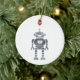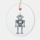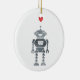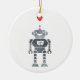 Sweet, Happy Robot with Little Red Heart Ceramic Ornament