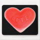 Cute design featuring a gummy candy heart with 'love' written on it in shades of red and pink on a black background. Mousepad with a customisable design for you to personalise with your own text, pictures and ideas. Created using an original photograph and digital techniques by Jess Perry.