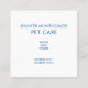 A business card with an adorable graphic illustration. A white kitty cat with a cute paw print image on her fur. Sleeping peacefully. A big pink heart behind her and some little stars too. Mint green background.