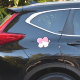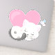 Vinyl decal with an adorable graphic illustration. A white kitty cat with a cute paw print image on her fur. Sleeping peacefully. A big pink heart behind her and some little stars too.