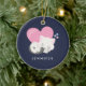 Personalized ornament with an adorable graphic illustration. A white kitty cat with a cute paw print image on her fur. Sleeping peacefully. A big pink heart behind her and some little stars too. Dark blue background.