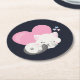 Sweet Kitty Cat Sleeping with a Big Pink Heart Round Paper Coaster