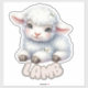 This large nursery sticker features an incredibly cute, cartoon-style lamb with a soft and gentle expression. The lamb is illustrated lying down with its legs tucked under its fluffy body. It has curly white wool, big, expressive blue eyes, and blushing cheeks. The lamb's ears are slightly perked, and it has a sweet smile. A small flower adorns its head, adding to its charming and innocent appearance. Below the lamb, the word "LAMB" is written in bold, playful letters, perfectly matching the adorable and child-friendly design.