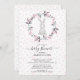 Adorable baby shower invitation featuring a little bunny rabbit framed with a delicate pink flower wreath. The back of the invite features coordinating back for an extra special touch.