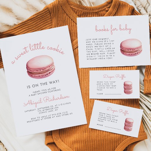 Sweet Little Cookie Macaron Pink Girl Baby Shower Invitation