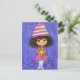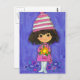 This vintage 1960's image has an adorable little girl dressed in pink. She is holding a yellow and orange daisy and wearing white go go boots. The background is purple with flowers at her feet. See my store Art by MAR for matching products with this design.