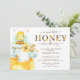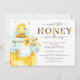 Adorable baby design featuring the sweetest little honey bee sitting on a jar of honey with a yellow sunflower. Visit our shop to view our entire honey bee baby shower collection