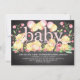 Adorable lamb invitation the sweetest little lambs with pink & yellow balloons adorned with pink watercolor flowers set on a black chalkboard background. Visit our shop to view our sweet lamb collection for a baby girl shower..