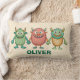 This adorable personalised lumbar pillow features three cute, happy monsters having fun together.