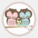 Sweet Little Owl Family on a Branch Classic Round Sticker