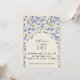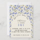 Lovely Sweet Little Pea Girl first birthday invitation with sweet pea floral print with butterflies in soft blue tones on cream background