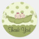 Cute Thank You Baby sticker featuring Sweet Little Pea Pod with baby twin girls on a green polka dotted background. Perfect sticker for baby favours or invitation envelope seals & birth announcements! Matching invitations, postage stamps & thank you notes are available in our shop at www.celebrateitinvites.com. ©Jessica Weible