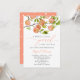 Rustic peach theme gender neutral baby shower invitation card featuring illustration of the garden fruit on a tree branch. Perfect for a girl's shower in the summer.