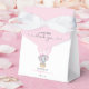 Add a whimsical touch to your baby girl shower with these adorable "sweet little thank you" favour boxes, featuring a sweet watercolor elephant in a soft pink hot air balloon. Easily personalise with the name of the mum-to-be and the baby shower date.