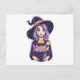 Sweet Little Witch with Magical Candy Bowl Postcard