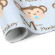 Adorable brown and baby blue monkey "M is for Monkey" monkey baby shower gift wrap. This sweet brown and blue monkey baby shower gift wrap can be customised with your text in the font style and colour of your choice.