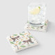 The coasters are gorgeous, a quality feel and heavy weight. They look like a precious archeological find. A rustic stone juxtaposed with a modern floral black and white print. I like the way the print goes slightly imperfect on the cut stone edges giving them a kind-of natural beauty.