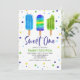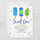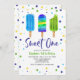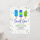 Watercolor ice pops Sweet One 1st birthday party invite in blue and green colours.