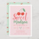 Celebrate your child's birthday with this sweet cherry invitation that comes in 2 different colour ways (blue and pink). This invitation features a set of cherry, perfect for any summer birthday party or for a sweet little girl. Matching party decor available in our store.