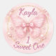 Celebrate your baby girl’s Sweet One birthday with this elegant pink butterfly round sticker featuring a satin bow, gold frame detail, and soft pearl accents. Perfect for party favours, candy bags, and dessert table decorations, this design adds a refined and feminine touch to any butterfly first birthday theme.