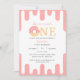 This design features one with pink doughnut along with pink sweet cream dripping background. Celebrate your sweet one's birthday by personalising this pink doughnut birthday invitation. Perfect for girls first birthday party invitation.